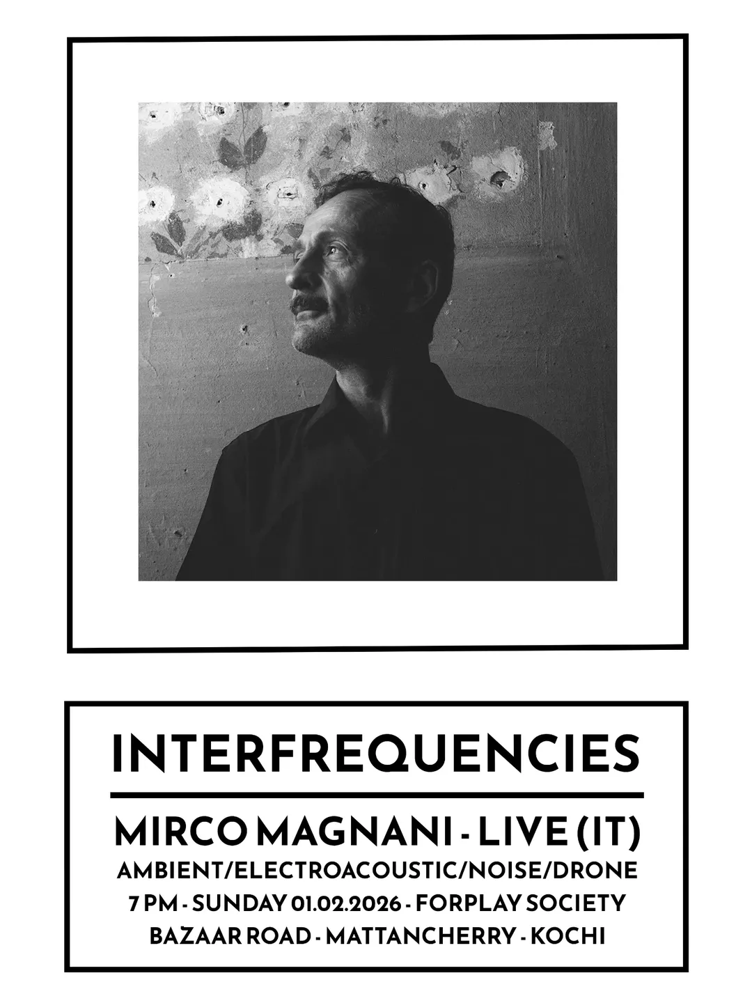 Read More1.Feb 26 7PM – Interfrequencies // Mirco Magnani (IT)Ambient Electroacoustic Set