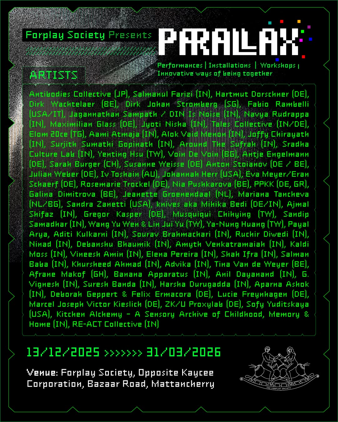 We open Parallax at @forplaysociety on December 13th with the @antibodiescollective, followed by an opening week of performances, installations, and workshops by Dirk Wachtelaer, @dirkstromberg, @fabio_rambelli, @talesofus.initiative, Maximillian Glass, @zf_kapturd, and others.
